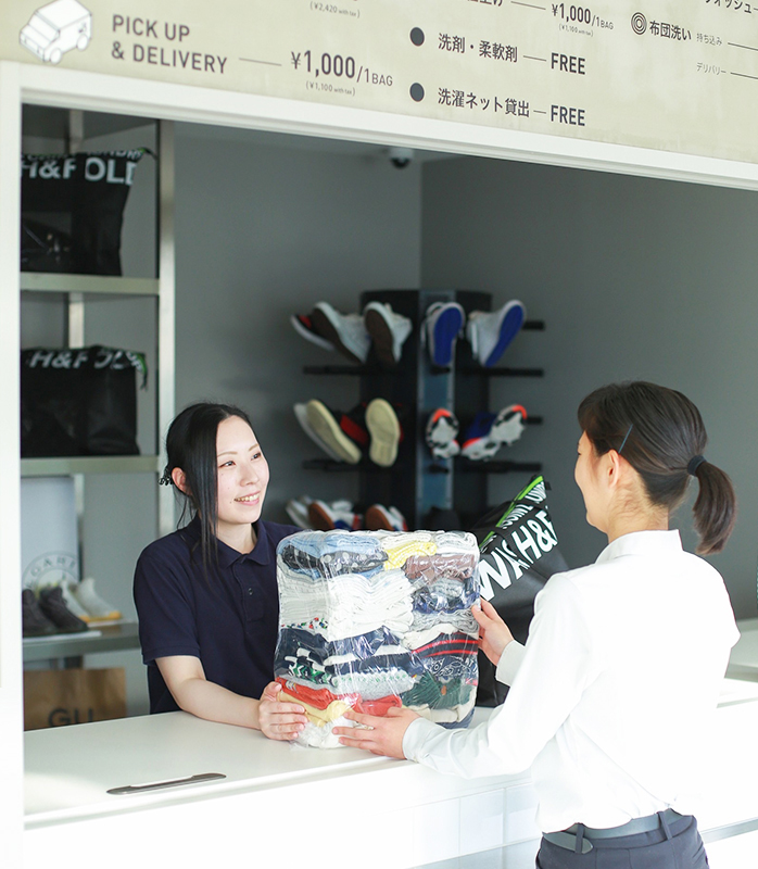 専任スタッフが店舗に常駐しています。お洗濯に関するご相談等はお気軽にお声掛 けください。(9:00~20:00)